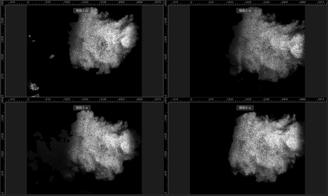 第七步 调整激光器、PIV相机、液晶快门的同步时序后,四台PIV相机从不同视角捕捉粒子图像。