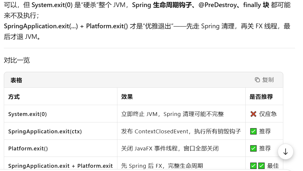 Platform.exit(); // 一定关闭JavaFX
