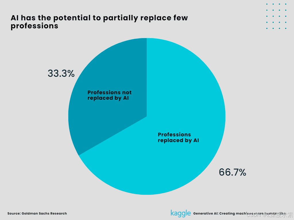A Goldman Sachs analysis claims that 300 million full-time jobs in the US and Europe might be replaced by AI or one-fourth of all work duties.