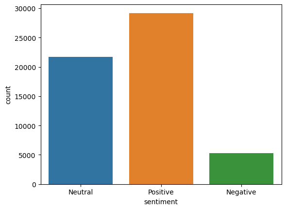 sns.countplot(x="sentiment", data=df)
