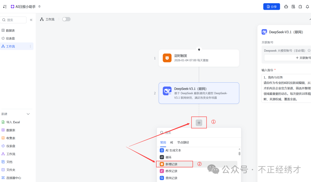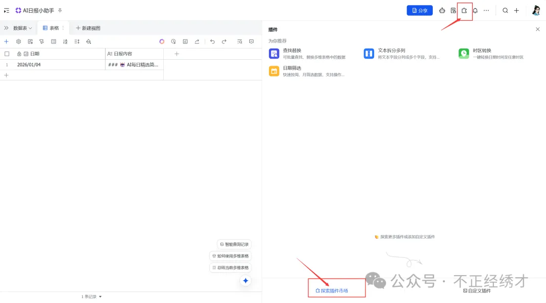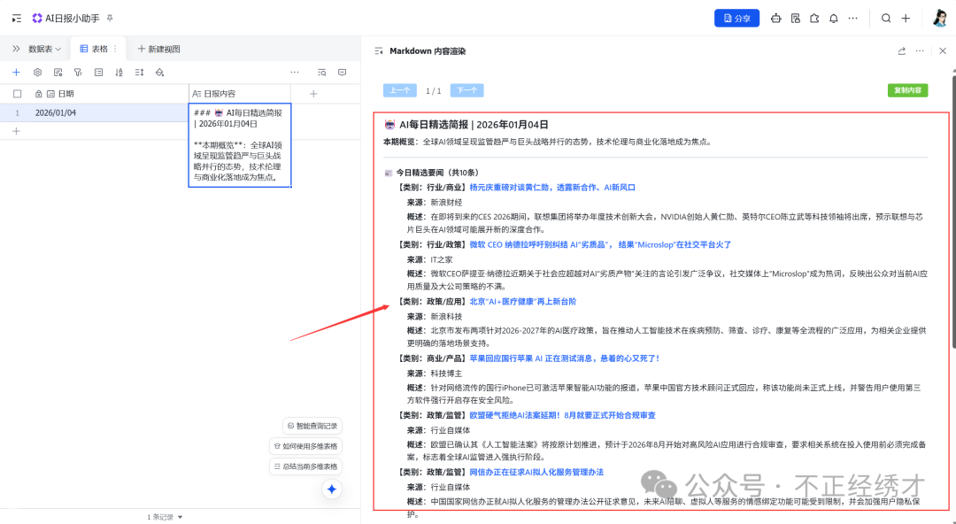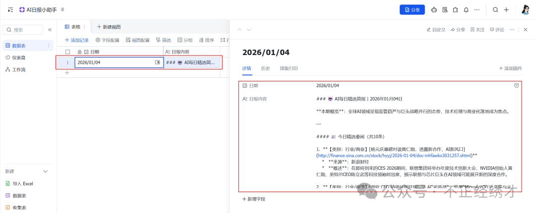 今天我们直接跳过扣子 ,用飞书多维表格搭建一个工作流------AI日报小助手,非常简单的入门案例。