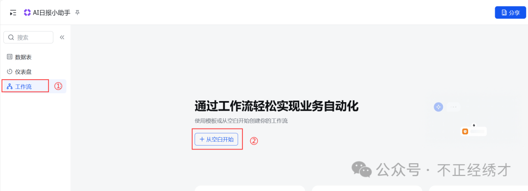 (3)点击工作流 ->从空白开始;