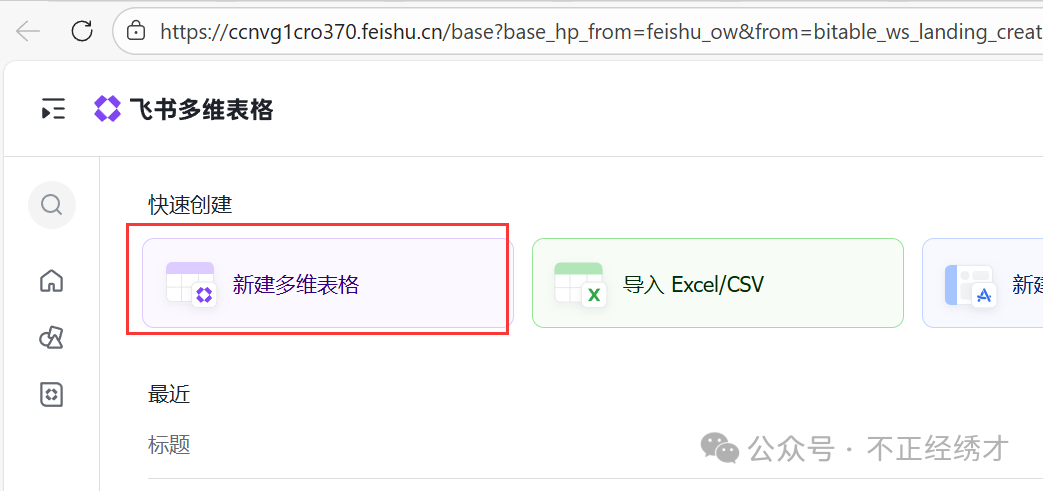 (1)登录飞书,点击多维表格 ->新建多维表格;