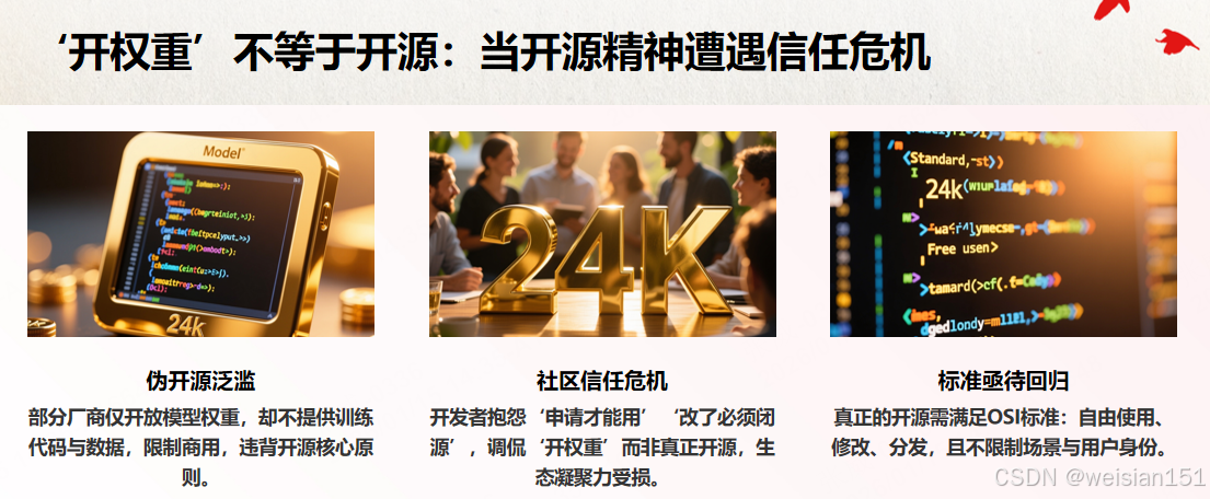 但2023年之后,开源的定义逐渐模糊。一场关于"什么是真开源"的争论悄然展开: