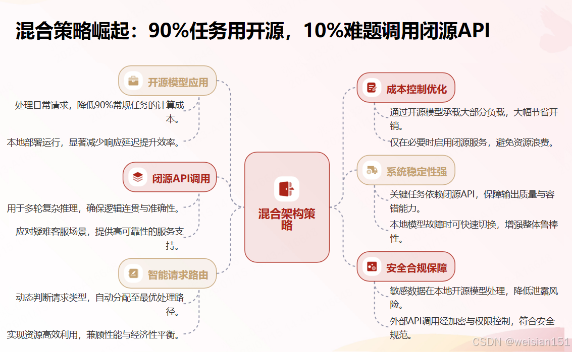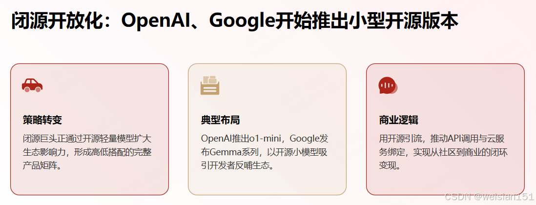 - 中国企业策略:核心开源+外围闭源、国内开源+国外闭源、阶段切换(先闭源验证,后开源降本)