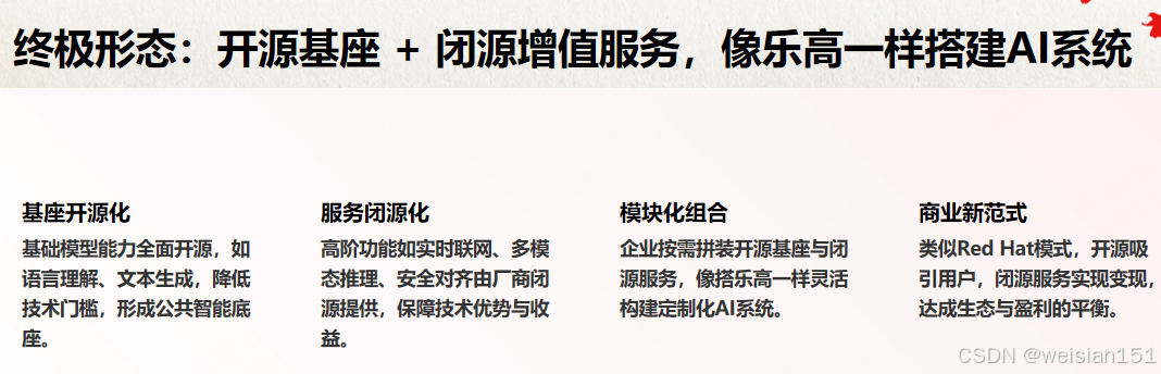- 市场分层:塔尖(闭源)、塔腰(混合)、塔基(开源)