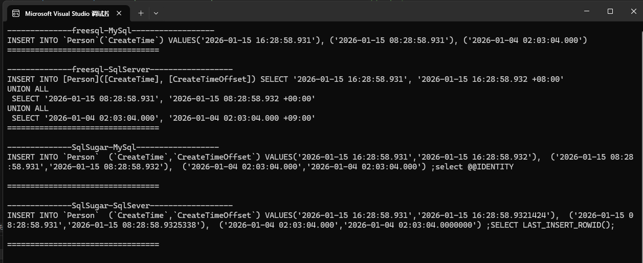 Console.WriteLine("--------------freesql-SqlServer------------------");