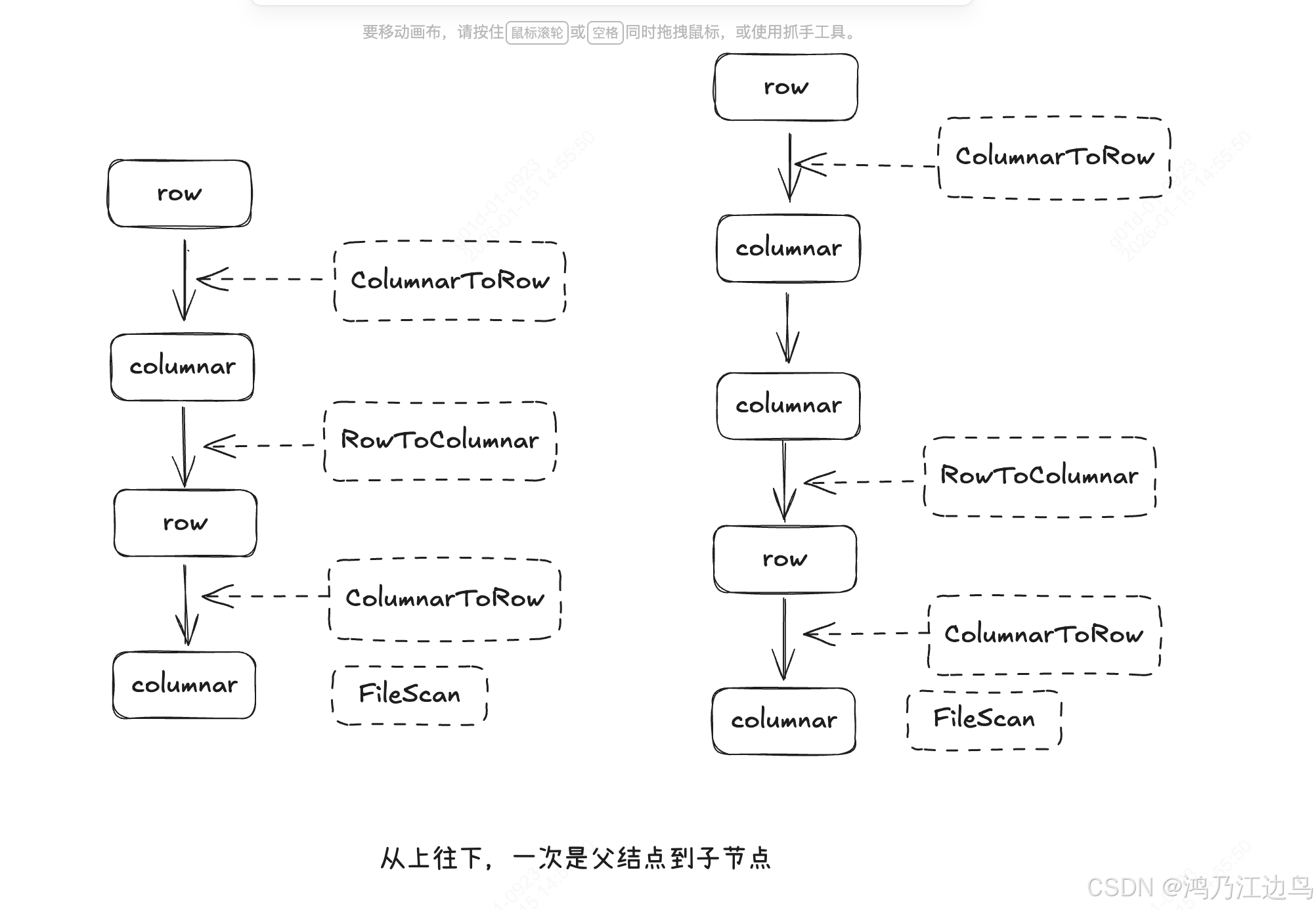 ColumnarToRowExec该节点 会调用子结点的executeColumnar方法,所以同时要插入insertRowToColumnar方法,以便该节点支持executeColumnar - 如果是要输出行式数据,且已经是 列行转换节点,则直接返回该计划