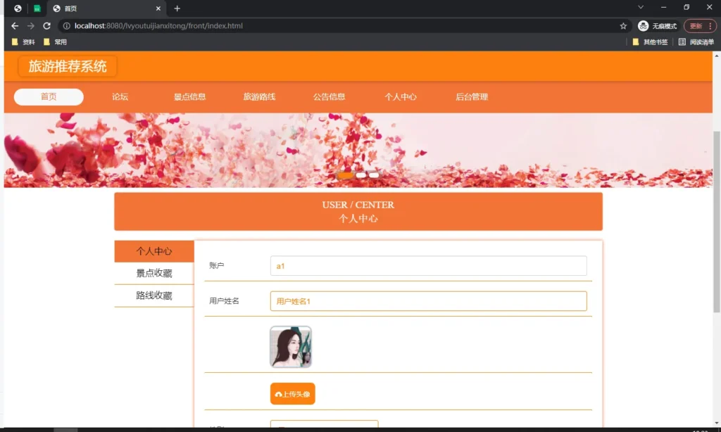 支持对注册用户的增删改查操作,并可通过用户名进行模糊查询,便于批量管理。 - 景点信息管理