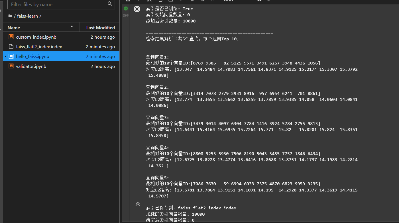 - 串联Faiss核心操作:向量生成、索引创建、向量添加、检索、结果解析