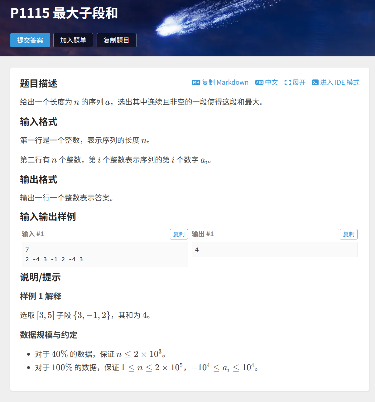 2. 最大子段和