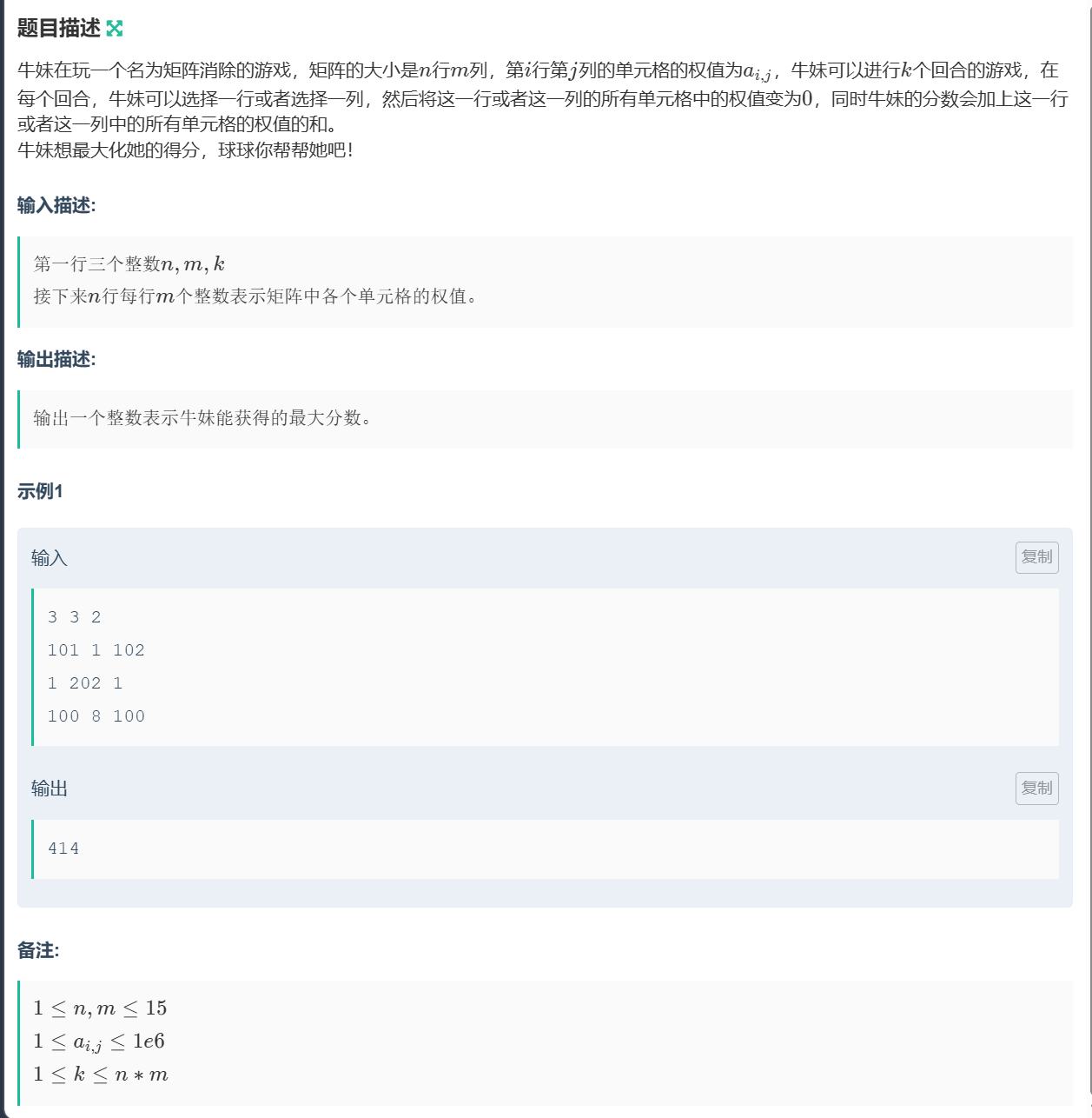 错误的贪心:每次选择最大的一行或者一列