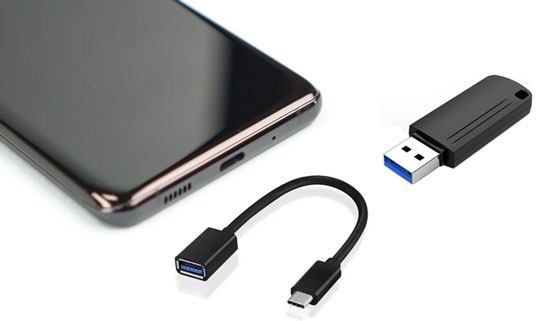 **第 1 步:**对于具有即插即用闪存驱动器的平板电脑,将 USB 记忆棒连接到平板电脑。对于没有 USB OTG 的用户,您可以使用 USB OTG。
