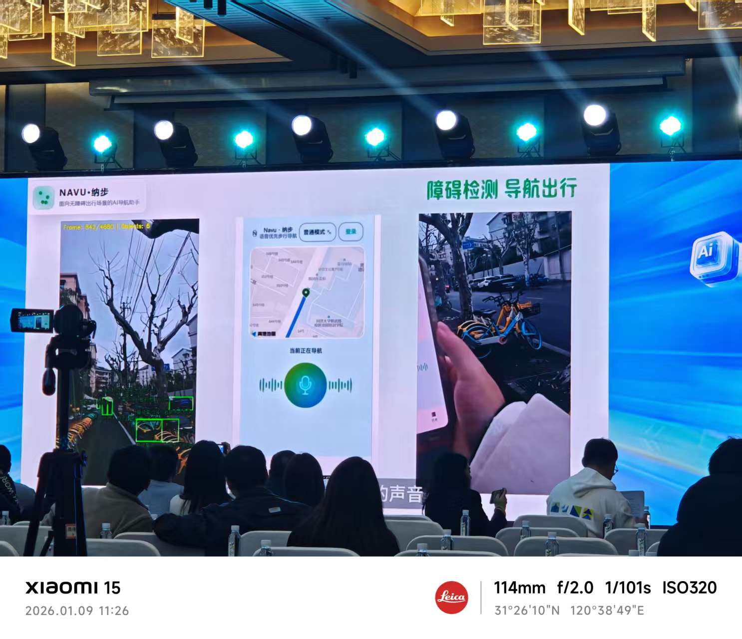 在众多路演项目中,最令人触动的无疑是名为"纳步"的项目。这是一个专门针对视障人群设计的障碍检测与导航出行辅助系统。当这张PPT出现在大屏幕上时,全场肃然起敬。该项目深刻诠释了"科技向善"的理念。从技术层面深度剖析,它极大概率结合了高德的高精度定位能力与终端设备的机器视觉(Computer Vision)技术。视障人士的导航对精度要求极高,普通的米级定位难以满足规避台阶、立柱等微小障碍物的需求。该项目通过整合传感器数据与地图数据,试图解决这一世界级难题。看到项目定义与规划的那一刻,其社会价值与技术难度的双重高度,便已注定了它在本次大赛中的冠军地位。