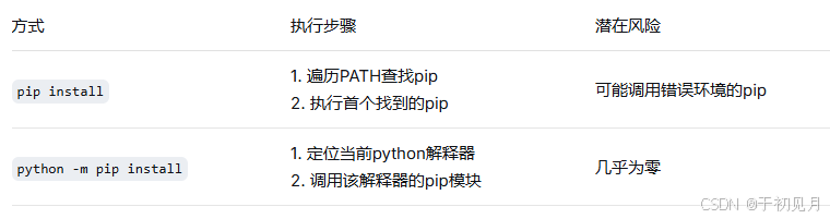 python -m 让Python解释器直接执行pip模块,完全绕过了系统PATH查找机制。