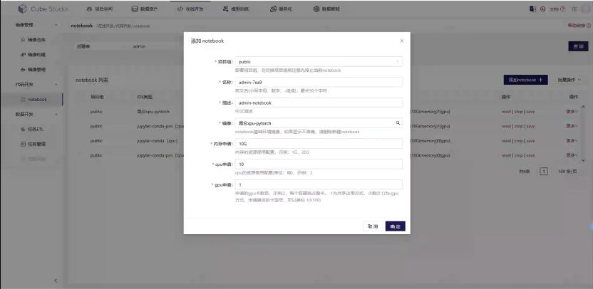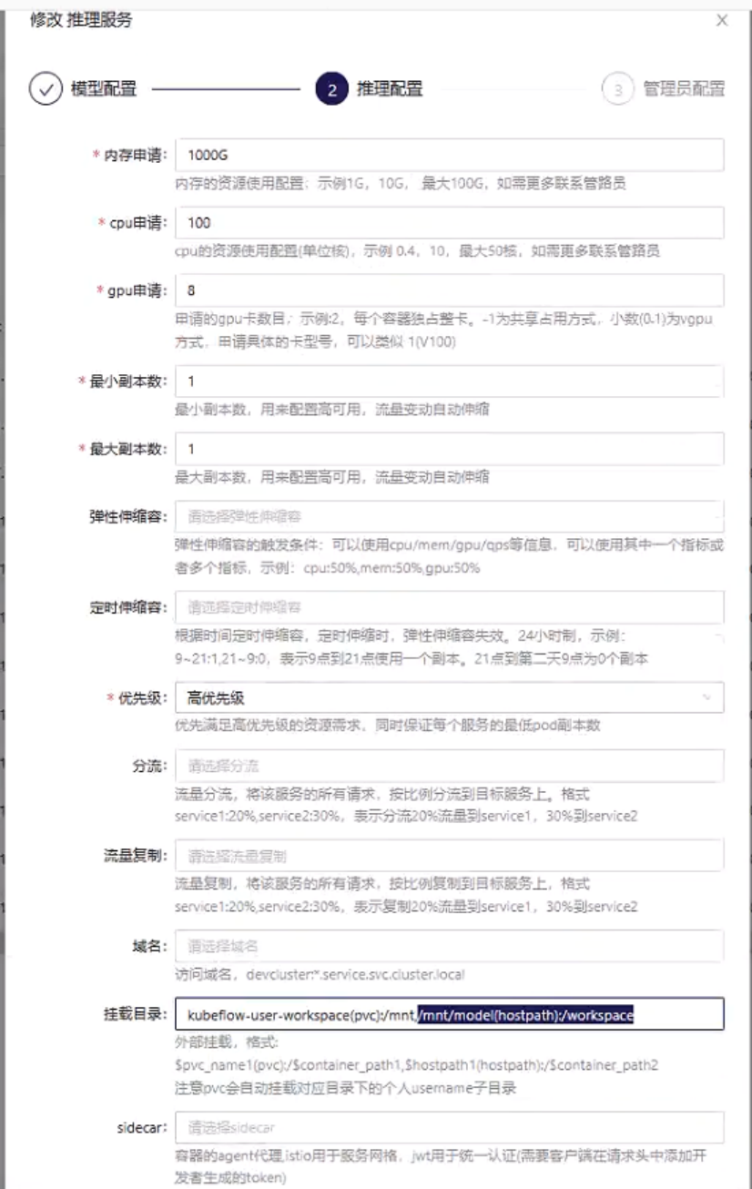 挂载目录:kubeflow-user-workspace(pvc):/mnt,/mnt/model(hostpath):/workspace
