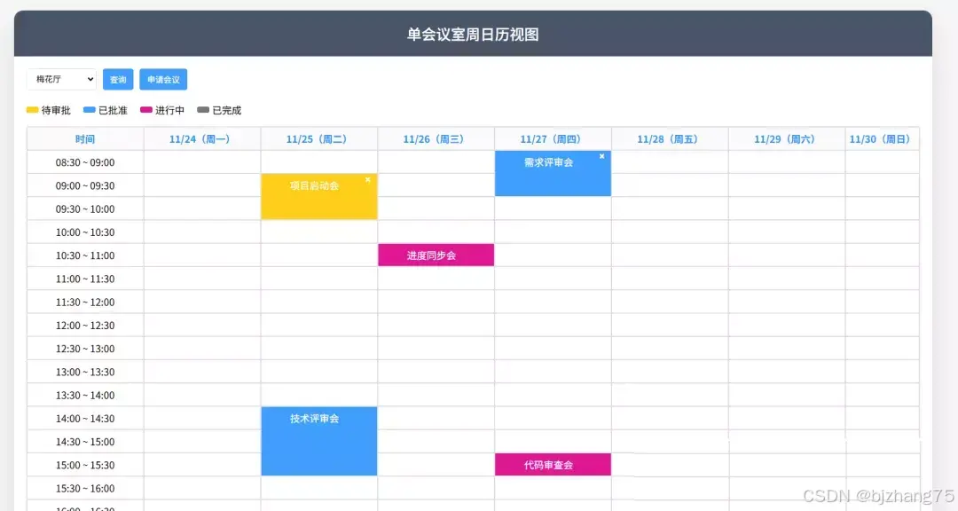 本文将介绍一个基于HTML、CSS 和 JavaScript 实现的单会议室周日历视图系统。