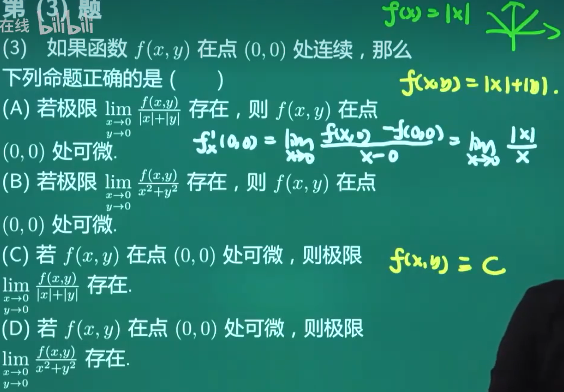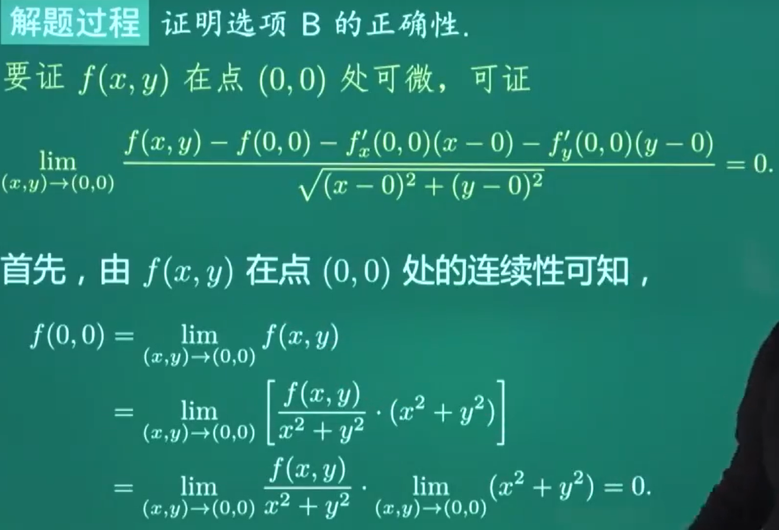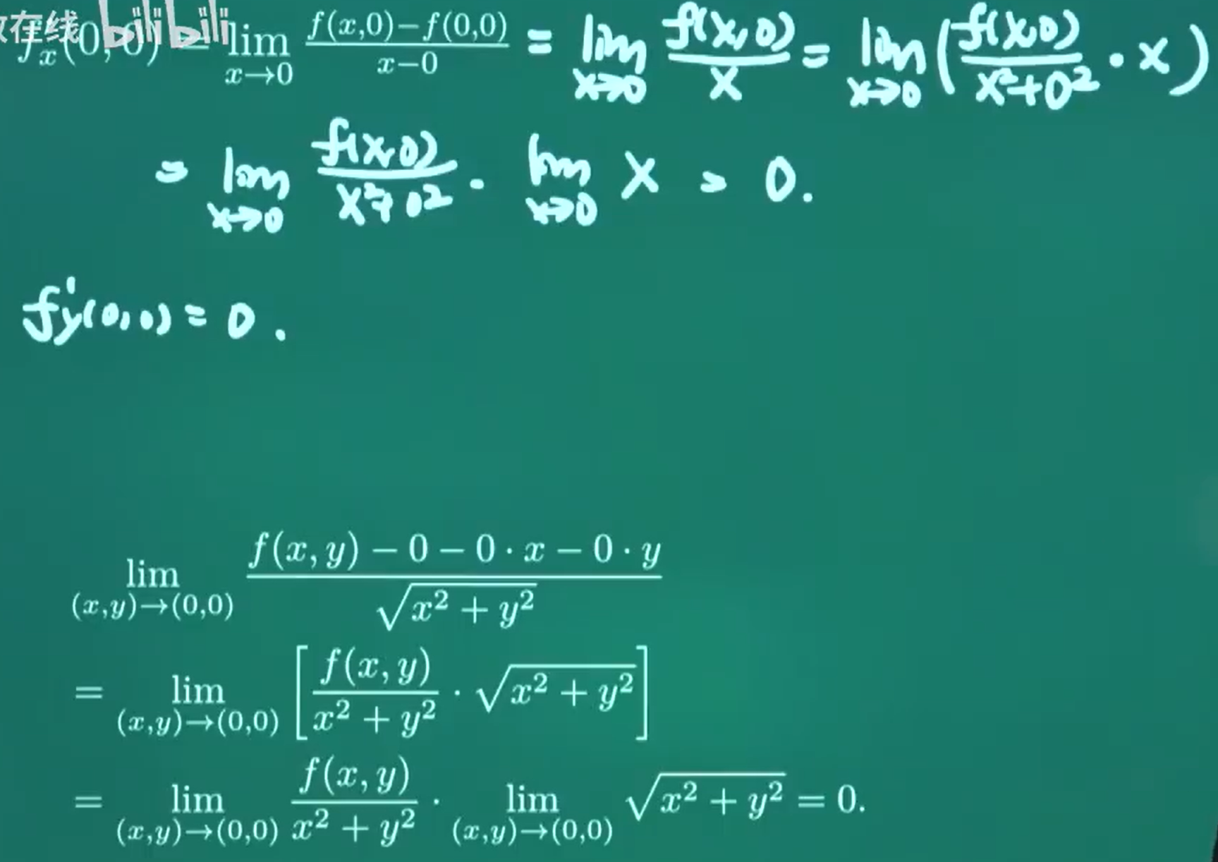 常数函数在任何点都可微,特别是在 (0,0) 处也可微。
