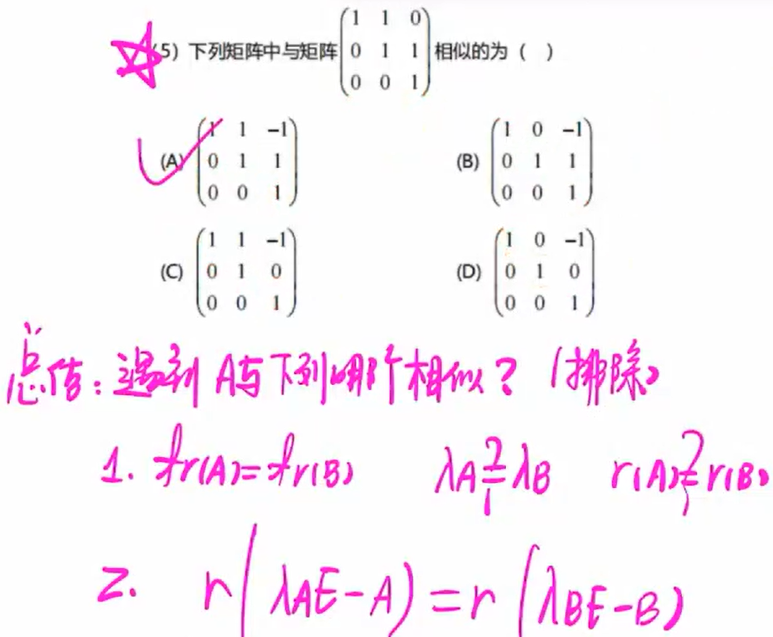 | r(λI − A) | ✅ 相同 | 相似变换下,rλI − A=rλI − B 相似,秩不变 |