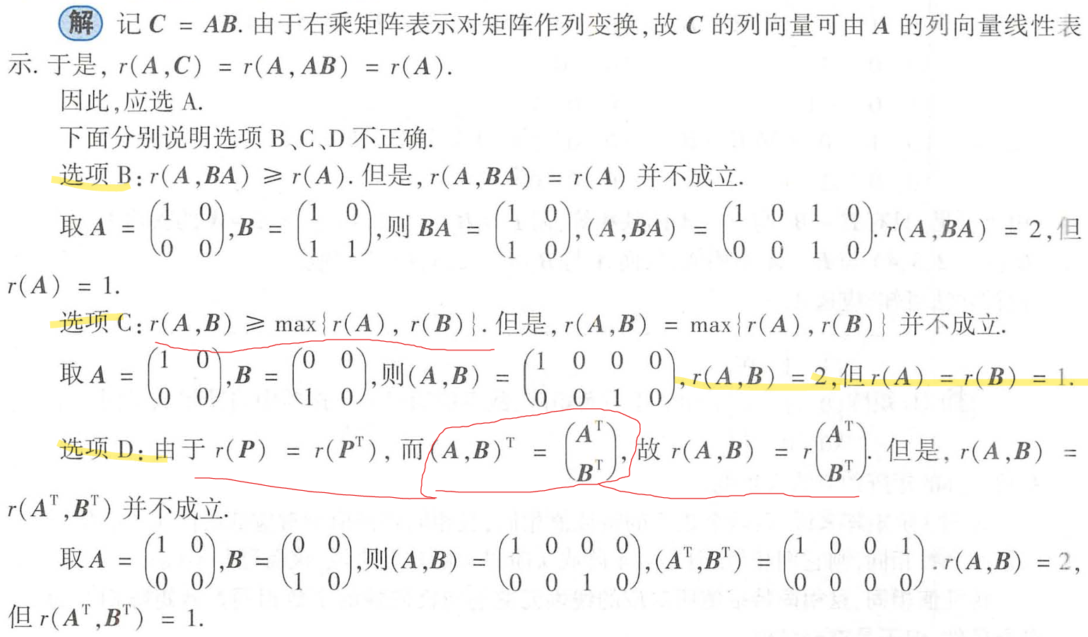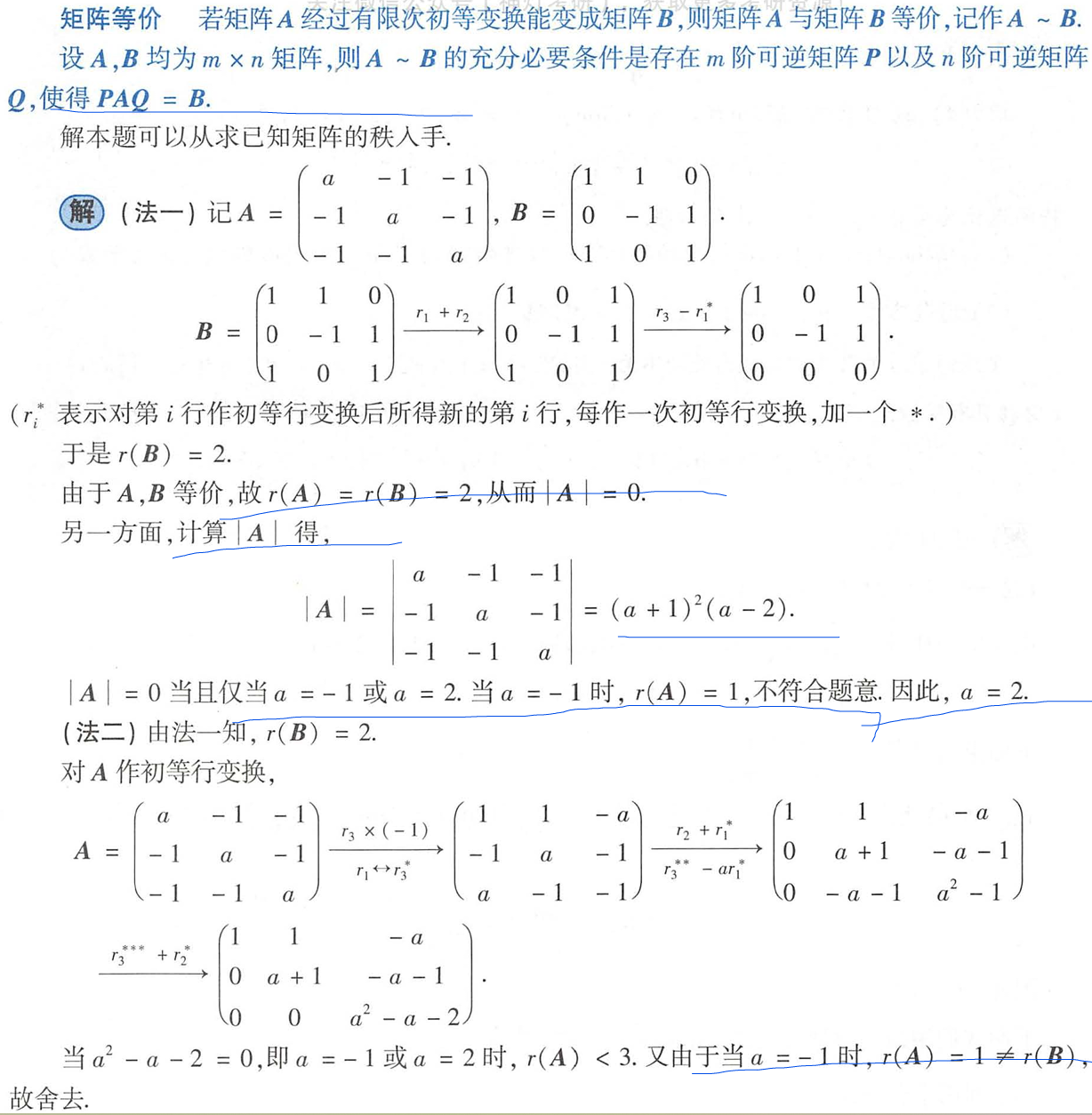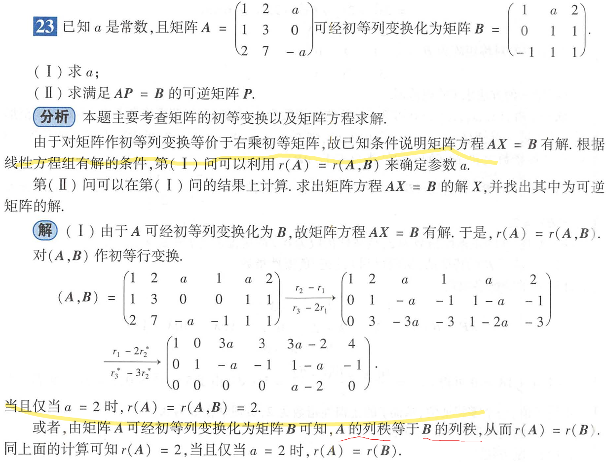 (A|B) 中rA=rB,这个只是等价只有分开处理,不是公共解,公共解才3秩相等