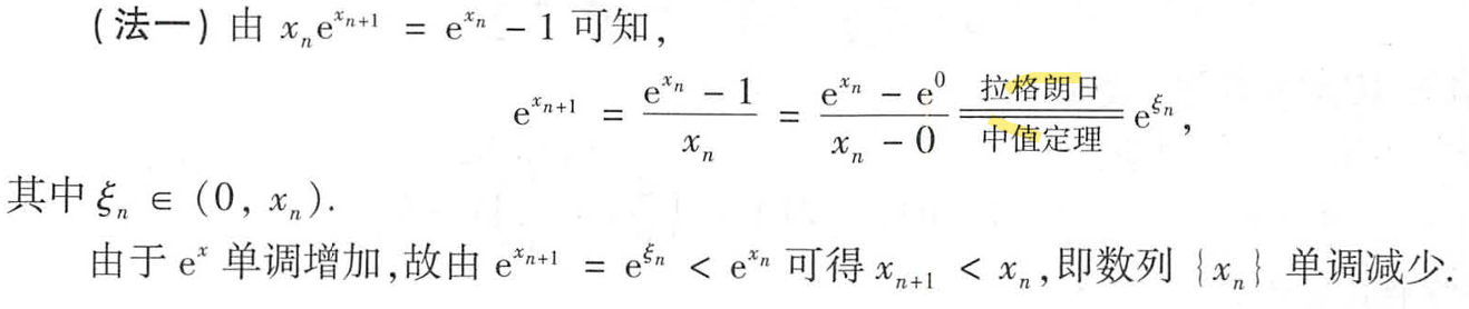 方法之2证明数列{x}单调减少。联想到了上面的拉格朗日极限:
