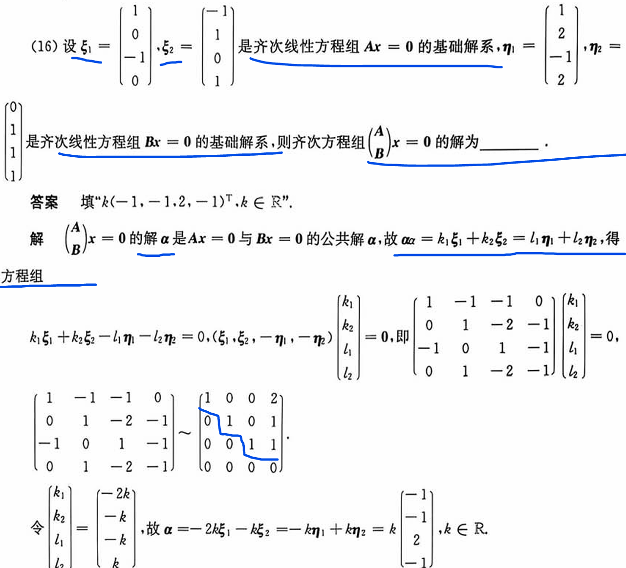 齐次线性方程组解的结构