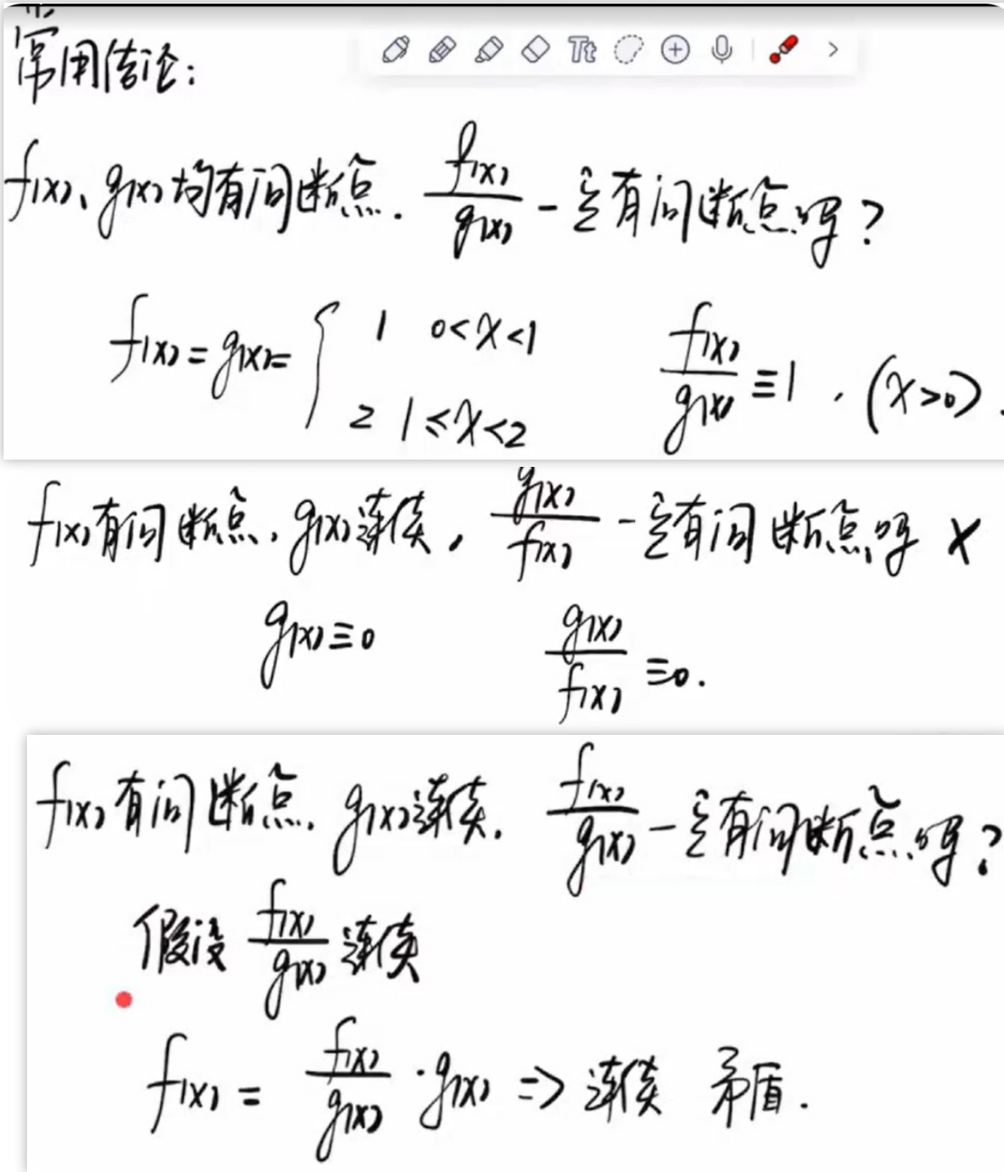 ++速记:只有震荡可能有,其他一律没有,联想到了f`也是没有第一类间断点。++