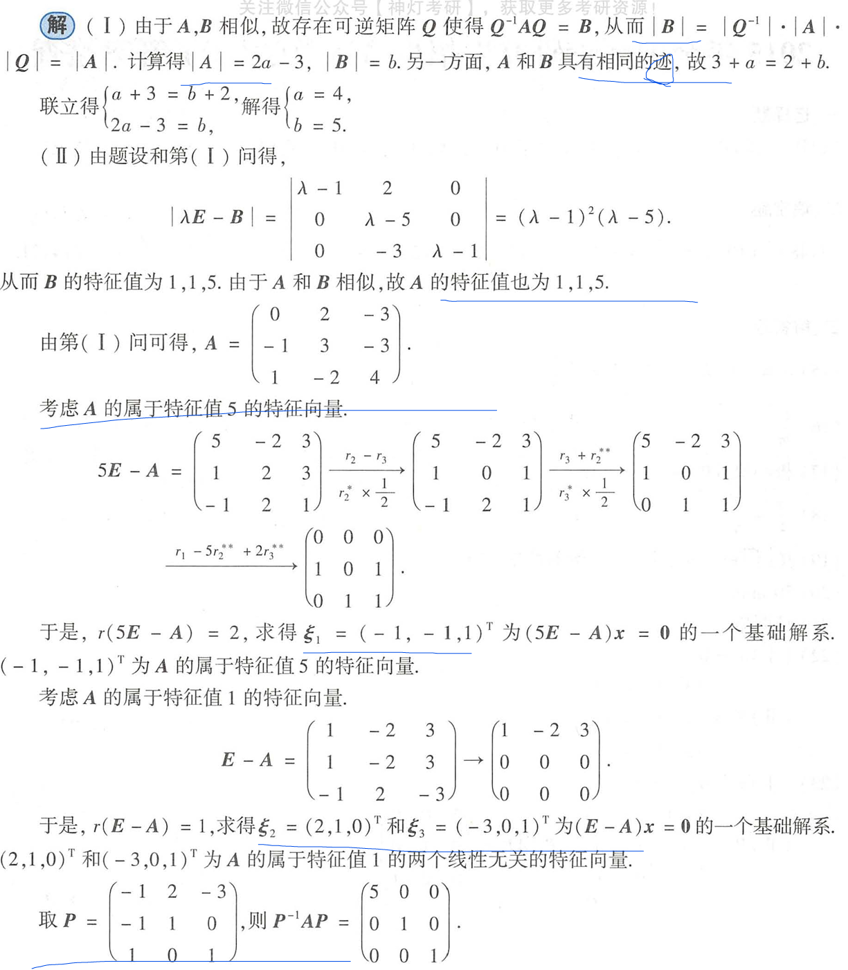 | 特征方程 | ✅ 相同 | 特征方程定义为 |λI − A| = 0 和 |λI − B| = 0 |