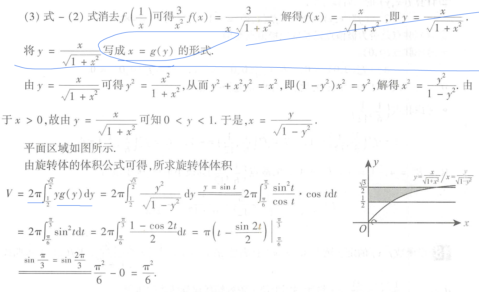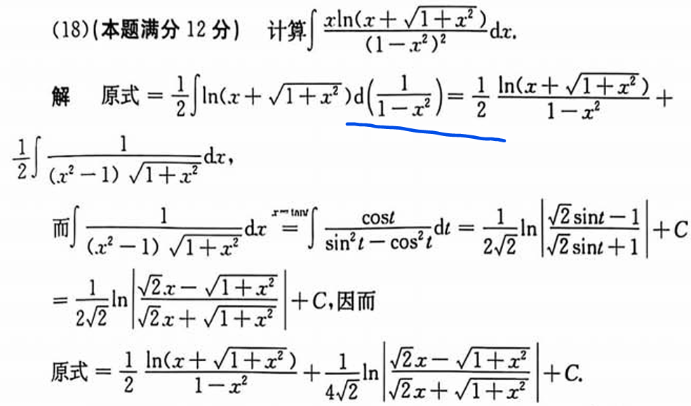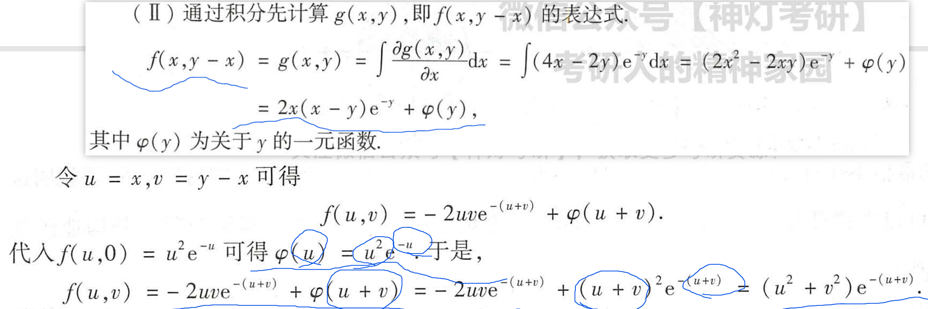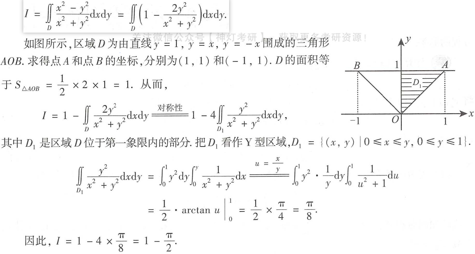 但是可以单独来计算,这个答案方法感觉还是很类似: 整体看,消掉一个dy再换元。