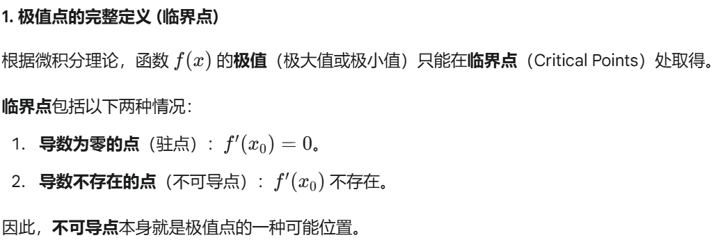 一般来说,可能的极值点包括: