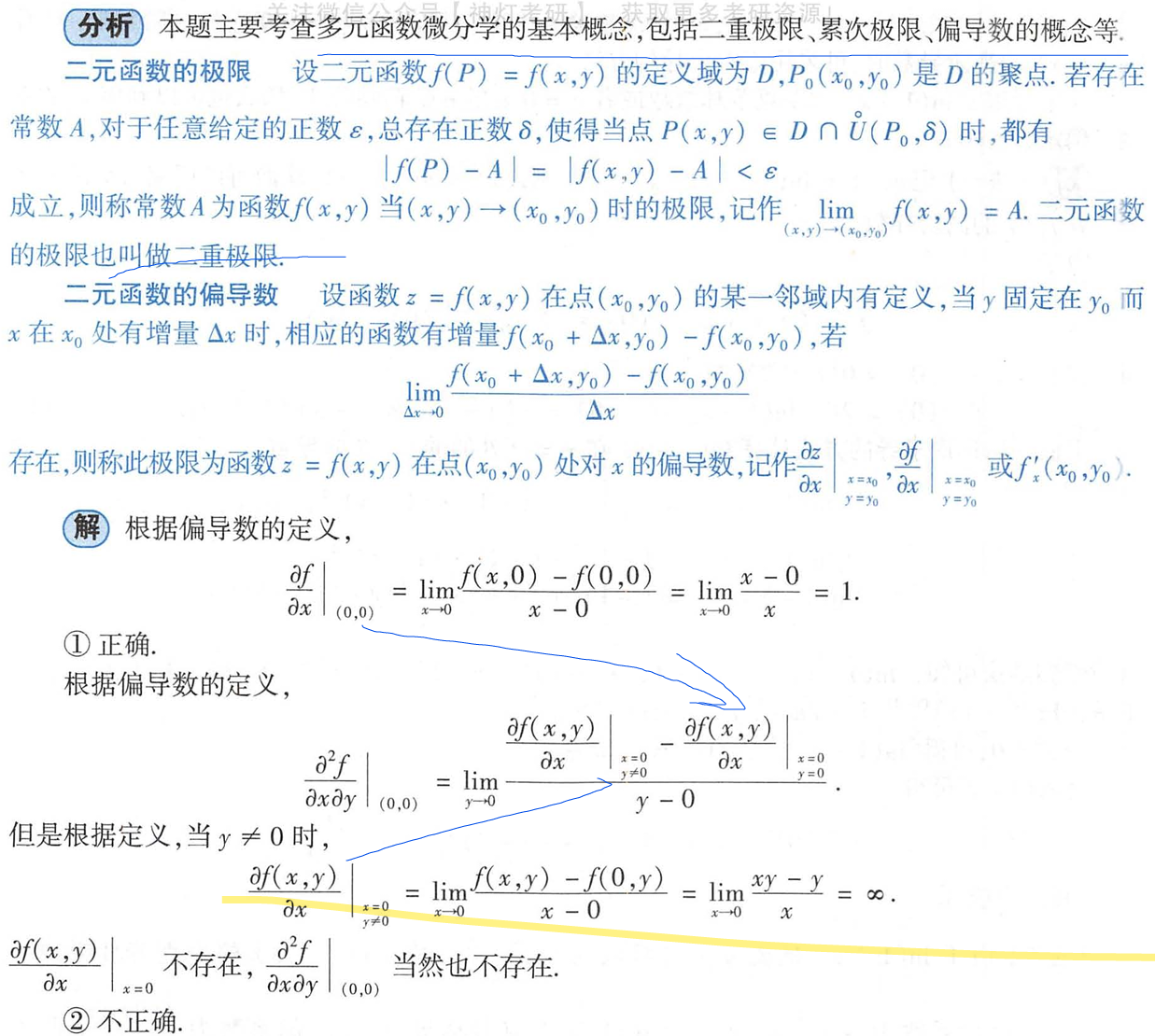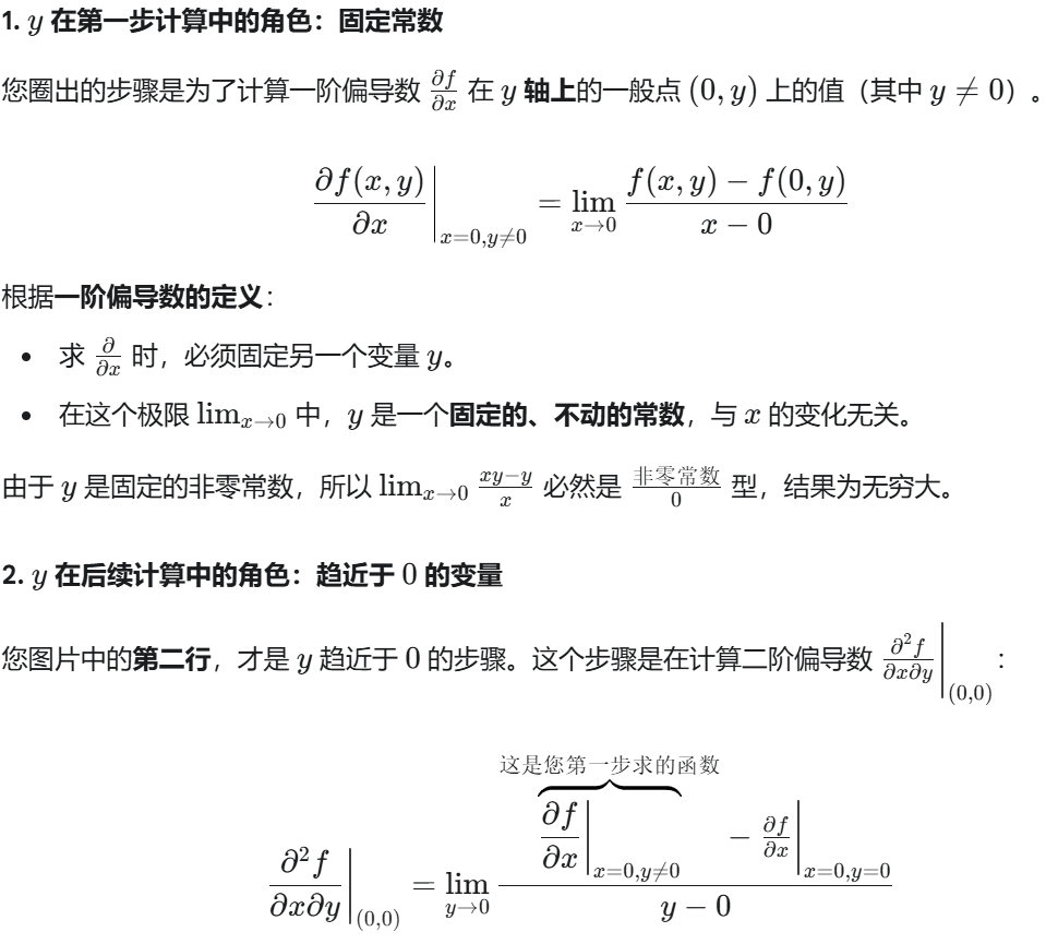 如果一个二元函数的混合二阶偏导数是连续的,那么混合偏导数与求导次序无关,即: