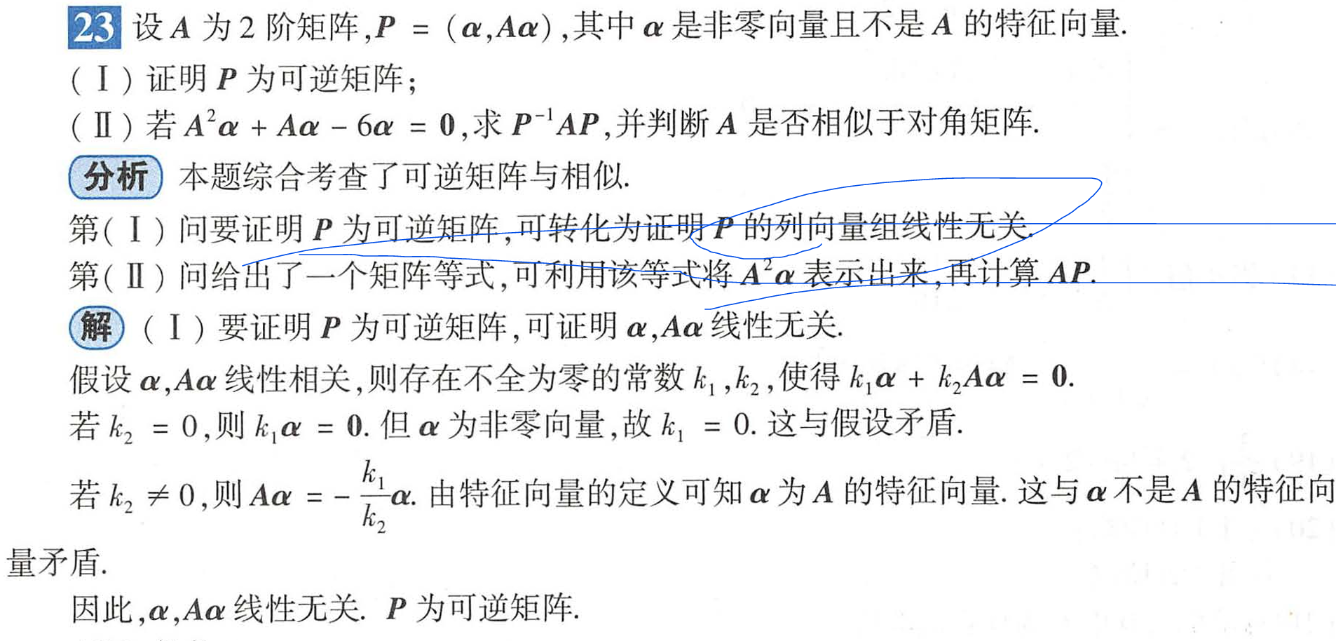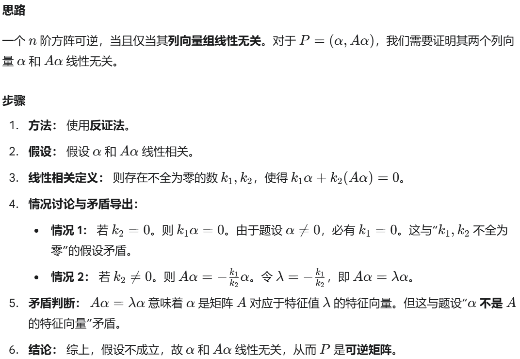 **特征值:**0 不是 A 的特征值(即所有特征值均非零)