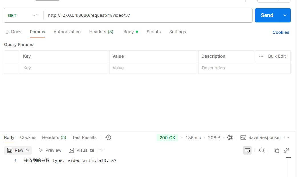 return "接收到的参数 type: " + type + " articleID: " + articleID;