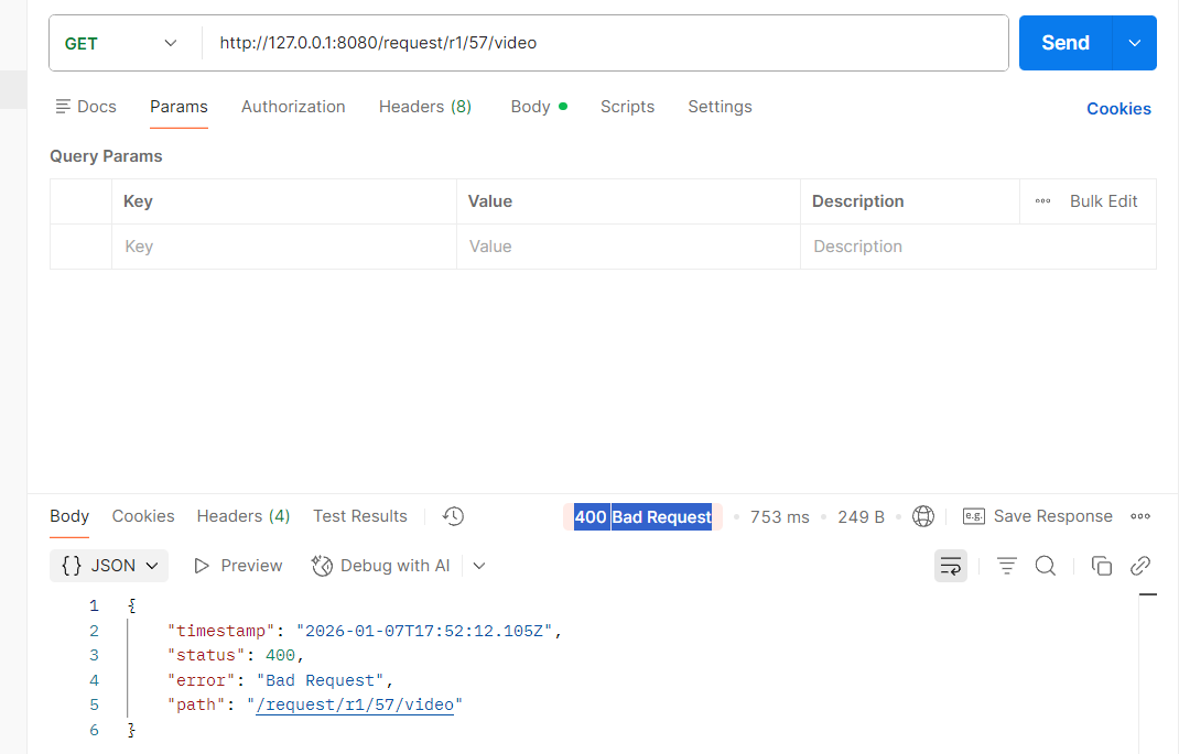 需要注意,在或者 URL 路径参数时,参数顺序不能改变,否则就会出现"400 Bad Request"。