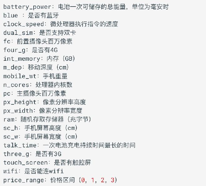 data = pd.read_csv('../data/手机价格预测.csv')