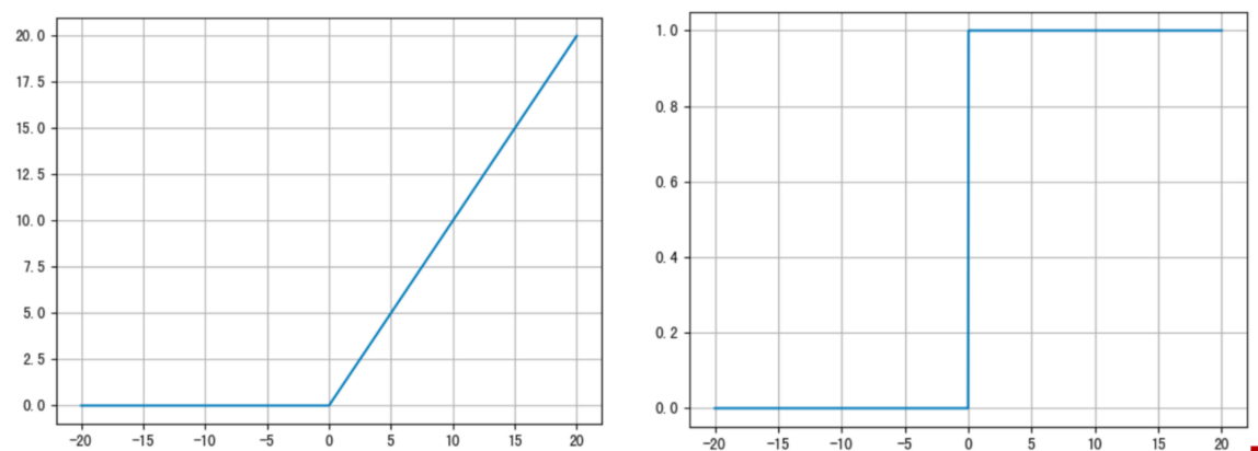 ReLU 的函数图像、导数图像如下: