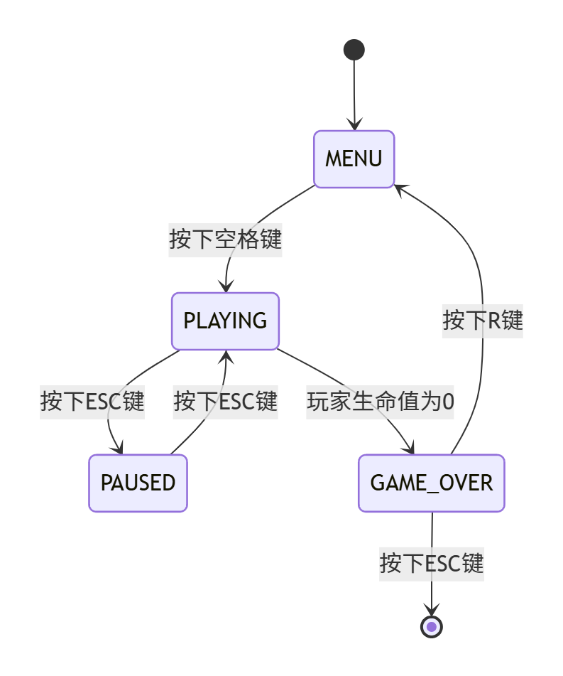 这种状态机设计使游戏逻辑清晰,每个状态有明确的入口和出口行为,便于维护和扩展。