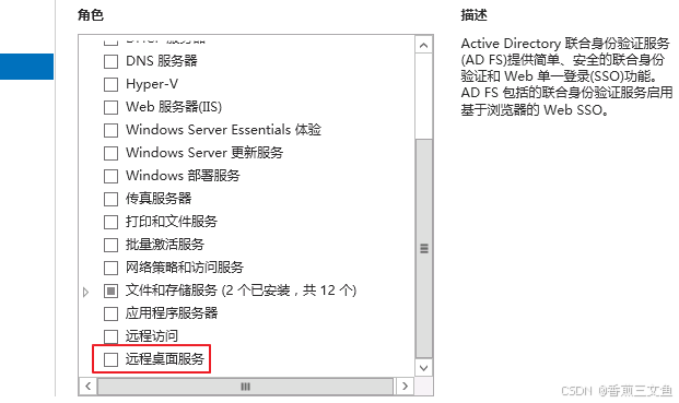 3.在弹出窗口中,取消勾选"远程桌面会话主机",并单击"下一步"直到完成。