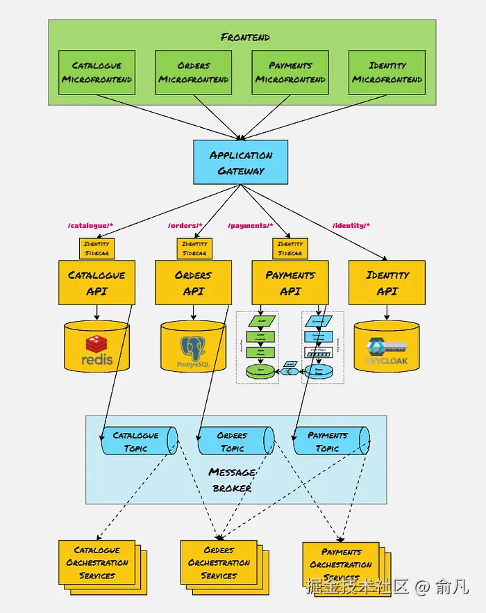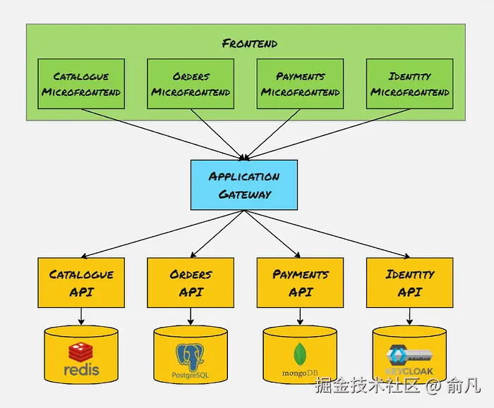 - 对外只暴露一个域名,由 应用网关 把请求路由到不同后端