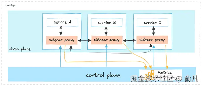 - 所有服务间通信都走 Sidecar,方便统一加密、监控、限流