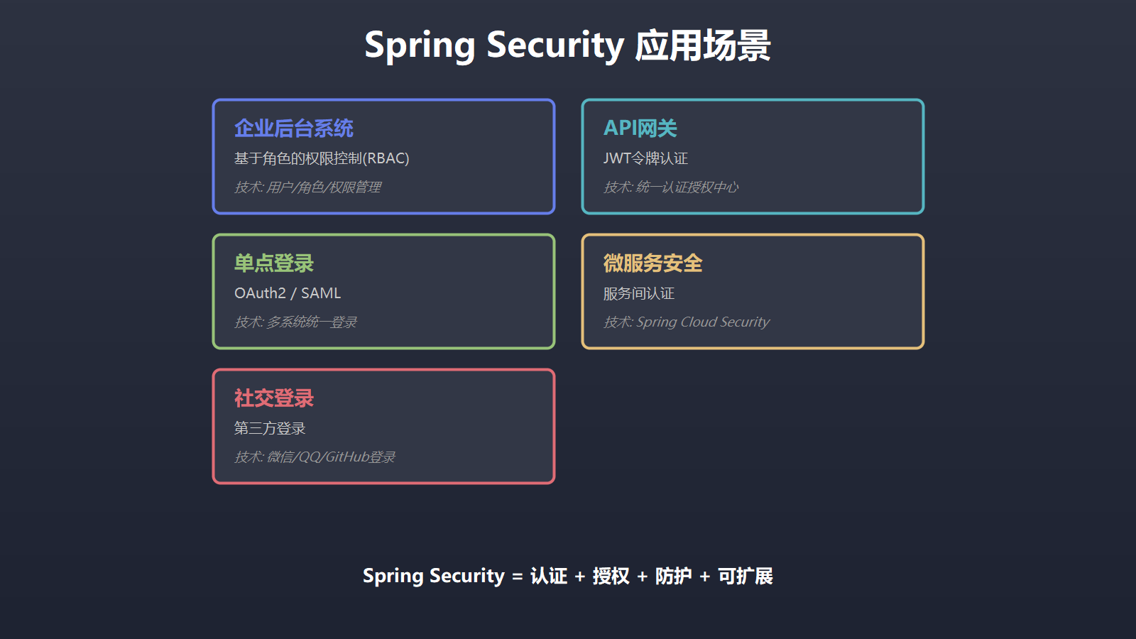 Spring Security是Spring生态系统中最强大的安全框架,它为Java应用提供全面的安全服务。无论是传统Web应用,还是RESTful API,甚至是微服务架构,Spring Security都能提供可靠的安全保障。
