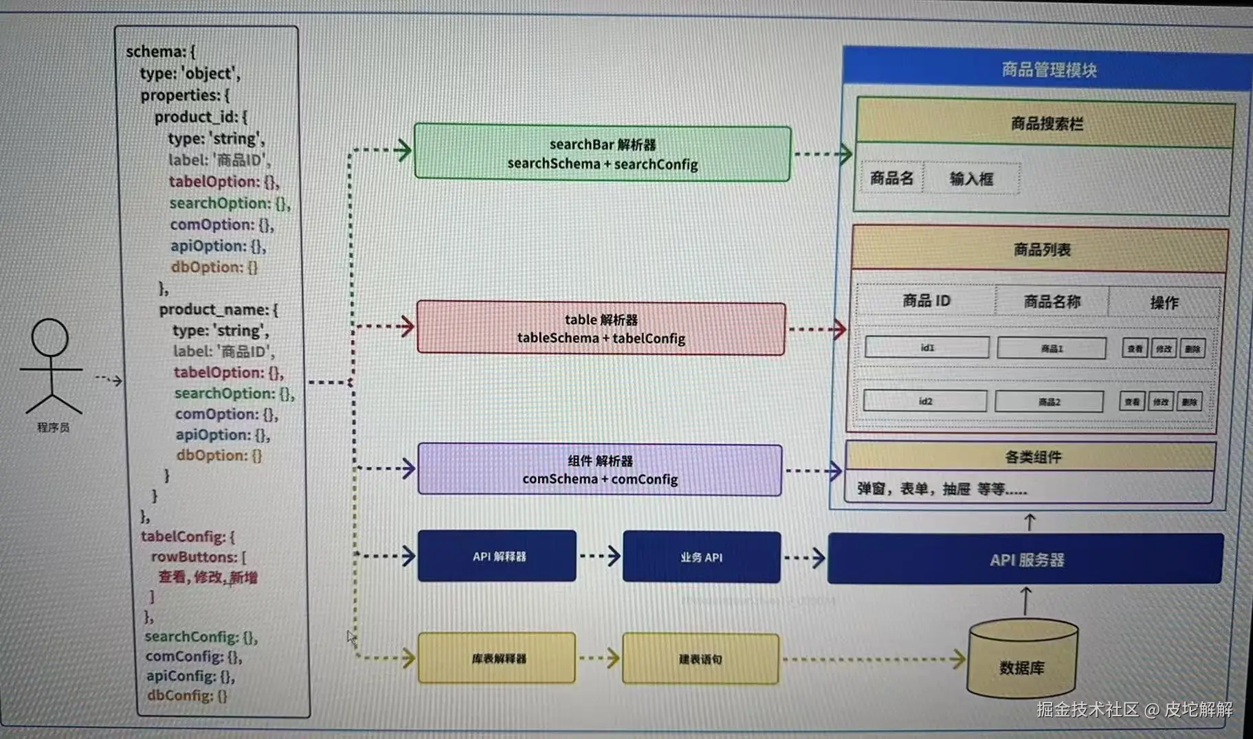 - moduleType为schema,解析schemaConfig,调用UseSchemaHooks实现schemaConfig配置的构造,并封装配置提取方法,对表格配置,搜索区域配置等进行独立的配置,以保证数据的清洁度。再调用对应的解析器,实现该板块的构建。