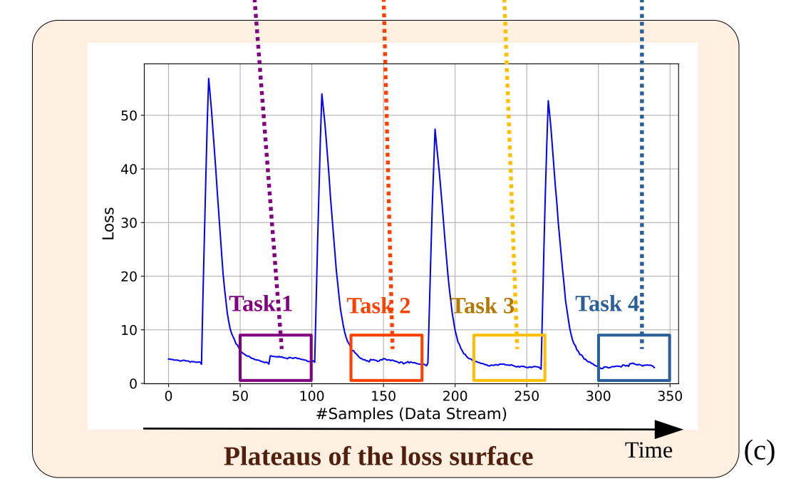 论文假设 "模型会在分布再次变化前先收敛 ",因此在学完一个稳定分布后,loss 会进入平稳平台(plateau),这类平稳平台就被当作"适合巩固知识、开启下一阶段适配"的时刻。
