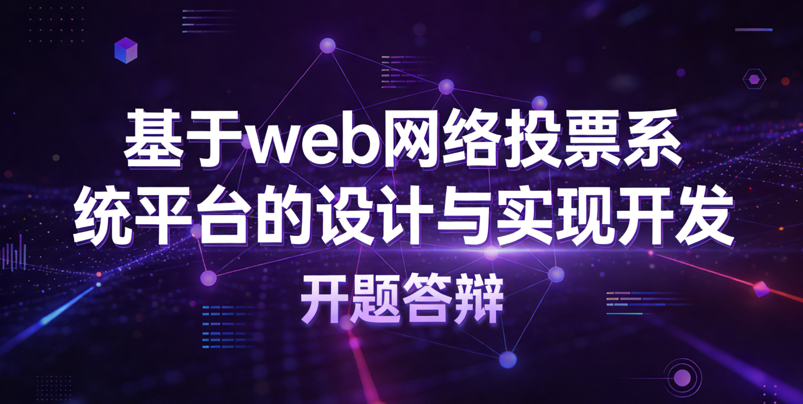各位老师好,我是XX同学,本次毕业设计的题目是《基于 Web 的网络投票系统平台的设计与实现》。系统主要面向校内小型评选活动,分管理员和普通用户两种角色:管理员可以发投票、管用户、看统计;用户可以注册登录、参加投票、发表评论、查看历史。技术栈采用 Java + Spring Boot 做后端,MySQL 存数据,前端用 HTML/CSS/JavaScript 配合 Vue 框架,开发工具是 Eclipse 和 Navicat。下面请各位老师批评指正。