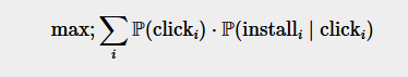 推荐系统在这里承担的是将有限曝光转化为真实安装的职责,其目标可以抽象为: