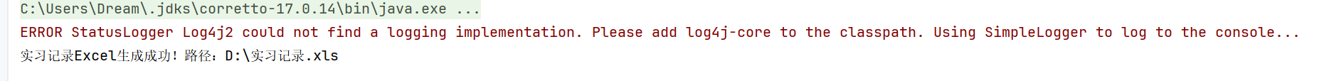 System.out.println("实习记录Excel生成成功!路径:D:\\实习记录.xls");