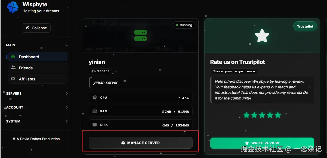 按照上述的操作你已经可以拥有一个服务了,但是这也仅仅是基础玩法,Wispbyte还是可以玩不少内容的。
