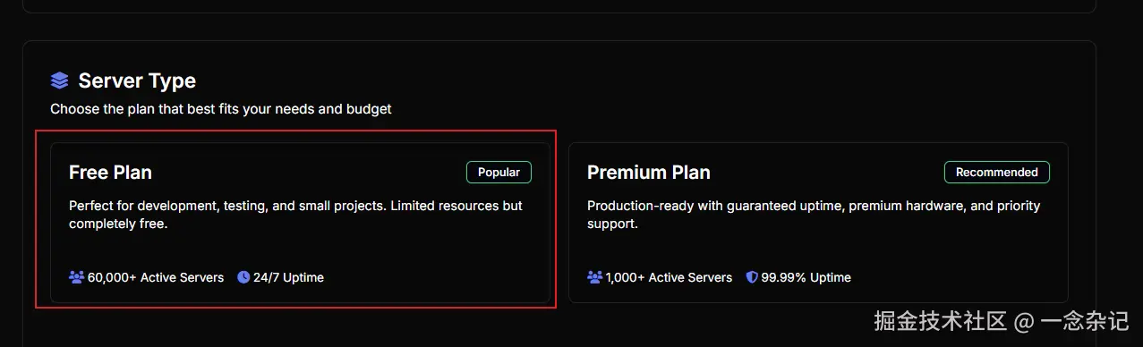 这一步比较关键,选择什么决定了你是否能够免费使用,这里我们选择"Free Plan":