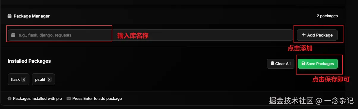 然后在下方输入你要添加的库名称,然后点击"Add Package "添加后点击"Save Package"保存即可。