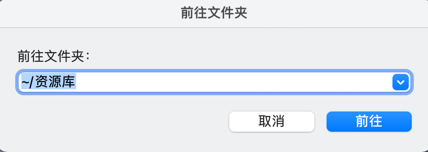 按 Command+Shift+G ,弹窗输入 "~/Library /资源库"回车。